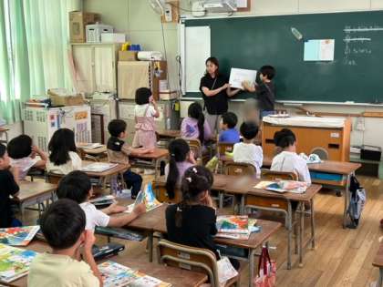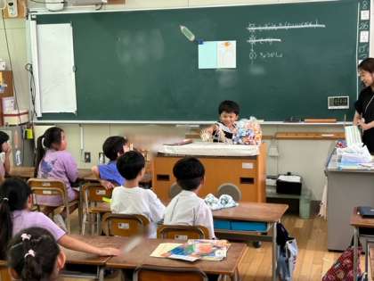 楽しく夏休みを過ごした1年生。夏休みの自由研究を待ってきた児童が発表をしました。子どもたちはとても興味を持って作品を見ていました。また、驚いていました。発表の後は大拍手でした。