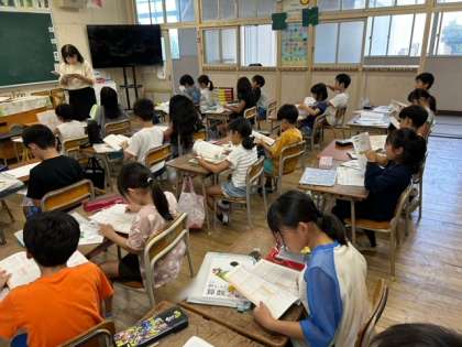 後期用の教科書が配布されました。うれしそうに新しい教科書を見ていました。