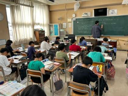 今日は、算数は単元テスト、社会科は水産業のさかんな地域、国語は詩「未知へ」を視写しました。 どの学級も集中して学習しています。