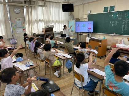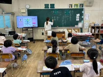 2年生が「合」「楽」の新出漢字を学習しました。読み方、熟語、書き順を学びました。デジタル教科書に合わせて書き順をしました。