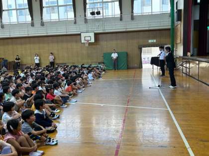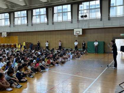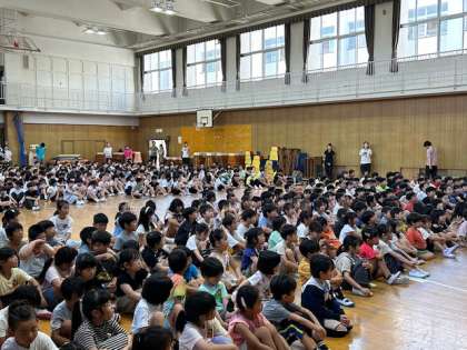 校長先生から9月1日「防災の日」に関する話がありました。明日は、津波の避難訓練と大阪880万訓練があります。しっかりと訓練をして防災意識を高めていきましょう。