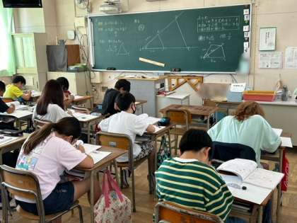 6年生は拡大図と縮図を学習しています。三角形の拡大図、縮図の書き方を学習している学級、これまでに学習した図形は必ず拡大図、縮図の関係になっているか調べている学級など、順調に学習を進めています。