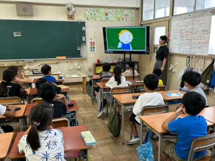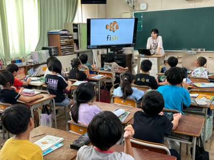 火曜日の朝はイングリッシュタイムです。3年生の教室をのぞくと、楽しく英語に触れ合う活動をしていました。
