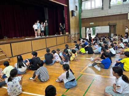 集会委員会が考えたイントロクイズをしました。曲を流すのではなく、集会委員会の児童が歌いました。楽しく活動ができました。