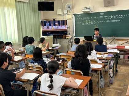 理科は、とけた金属は水溶液の中でどのようになるかを動画で確認し、まとめました。国語は「模型のまち」の学習で第3場面での亮の心情を考えました。