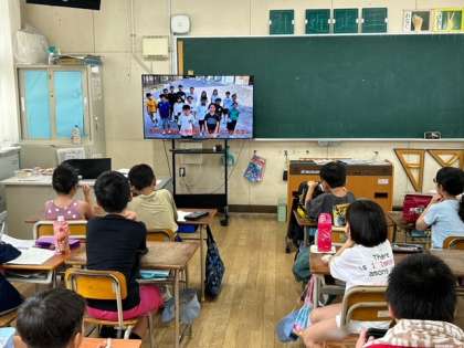今日の児童集会は、運動委員会によるビデオ発表です。一輪車や竹馬の片付け方を全校児童に知らせる内容です。きれいに片付いていると気持ちいいですね。
