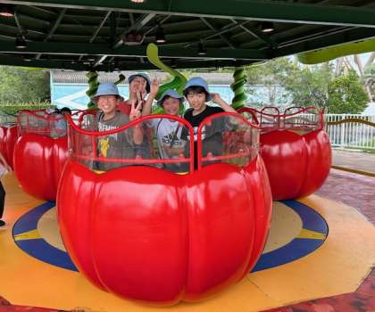 今日は空いているので、ほとんど並ばずにアトラクションに乗れます。現在、くもりで気温26度です。熱中症の心配もありません。
