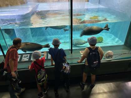 ジュゴン、ペンギン、ドクターフィッシュなど、たくさんの生き物を見てふれあいました。