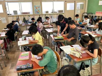 4年生が漢字ドリルを使って新出漢字の学習をしました。漢字ドリルに漢字を書き、先生に点検をしてもらいました。