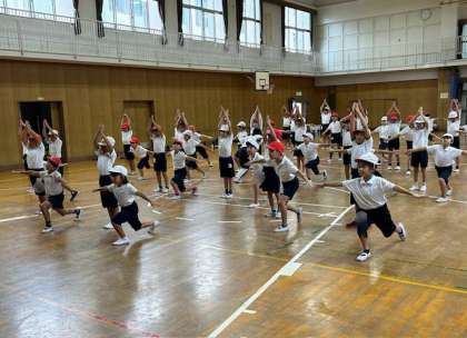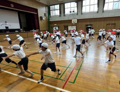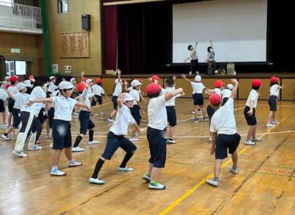 体育館で運動会の団体演技の練習をしました。キレキレのリズムダンスに挑戦しています。とにかく楽しく踊っているのがいいですね。