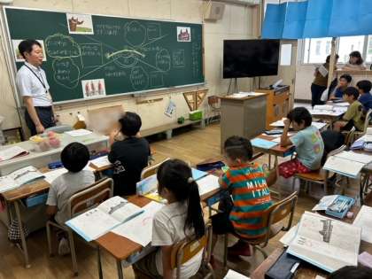 2年生が国語「ニャーゴ」の学習をしました。今日の授業は、校内研究授業として行いました。たくさんの先生が授業を参観をしている中、子どもたちは4つの「ニャーゴ」のちがいをしっかりと考えました。