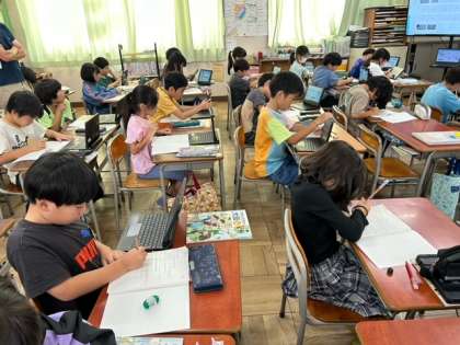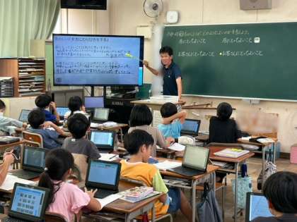 社会科は「店の工夫と買い物客のねがい」を学習しました。店の工夫の資料を見て、店にとってやお客さんにとってどのようにいいのかを考えワークシートに書きました。それをタブレット端末で撮影し、提出しました。発表ノートを活用して友だちと自分の意見を共有しました。