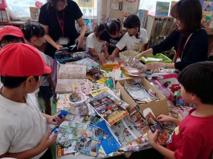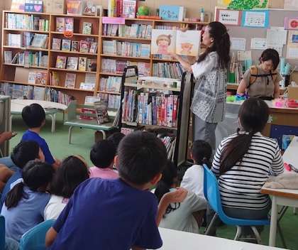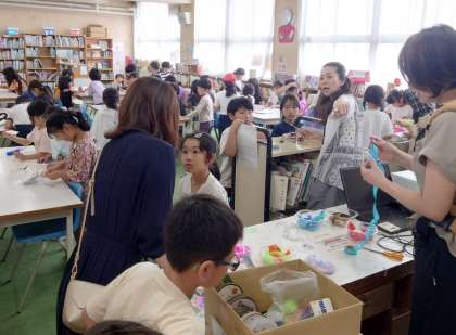図書館まつり2日目です。休み時間にはたくさんの子どもたちが、図書室に集まりました。図書館ボランティアさんから本の読み聞かせをしてもらったり、しおり作りを教えてもらったりと、大盛況です。図書館ボランティアの皆さん、ありがとうございました。