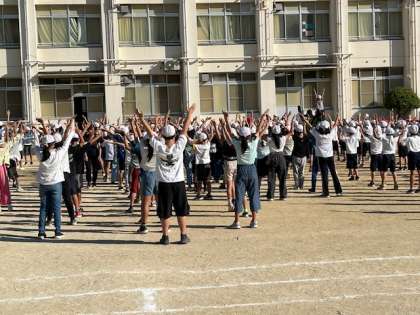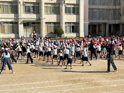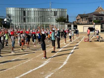今日の児童集会は、運動会で行うラジオ体操の練習をしました。開会式の並び方になり、運動委員会の児童が前でラジオ体操をします。しっかりとラジオ体操を覚えましょう。