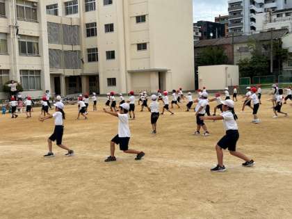 運動会の団体演技が仕上がってきています。3年生も本番のように通しで行いました。空へ羽ばたくようにのびのびとダンスをしています。