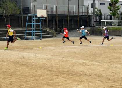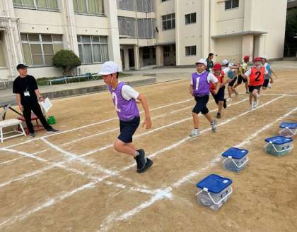 6年生が運動会で行われる紅白対抗リレーの練習をしました。バトンパスをいかにスムーズにできるかが、勝敗のポイントです。6年生、がんばれ。