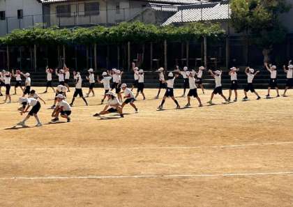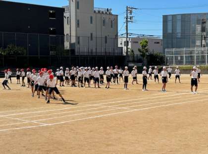 5年生は、団体演技をしあげています。「丸山ソーラン」は2曲で構成されています。かけ声が元気よく、隊形移動もスムーズにできてきています。本番が楽しみです。