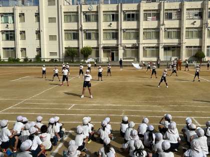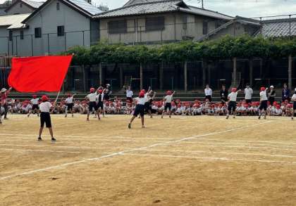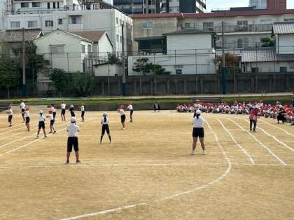 運動会全体練習で応援合戦の練習をしました。赤組も白組も声がしっかりと出て、応援合戦を盛り上げていました。特に学年コールがよかったです。