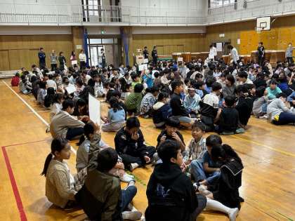 児童集会は「人間まちがいさがしクイズ」をしました。最初のポーズと後のポーズのちがいを探すクイズです。たてわり班でクイズの答えを考えました。