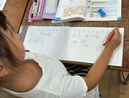 1年生が算数「ひきざん」の学習をしました。繰り上がりのあるたし算と同じように、さくらんぼを使って繰り下がりのあるひき算をしました。