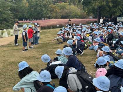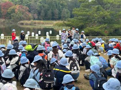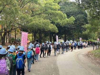 予定通りの時間に長居植物園に到着しました。開会式をして、いよいよ出発です。12時までオリエンテーリングです。くもり空ですが、活動しやすい気温です。
