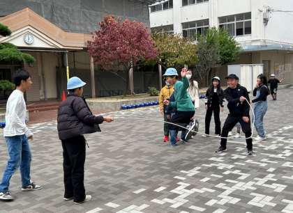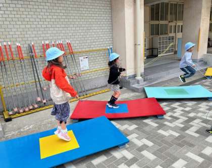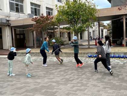 なわとび週間が始まりました。休み時間には、花の広場で大なわとびをしたり、ジャンピングボードを使って短なわとびを練習したりしました。楽しく体力作りに取り組んでいます