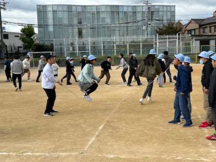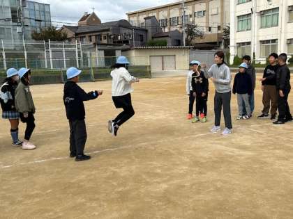 15分休み時間、3年生と6年生が大なわとびをしました。8の字とびで7分間練習をした後、3分間で跳んだ回数を数えました。各学級で目標数を決めて、目標達成に向けて取り組んでいます。