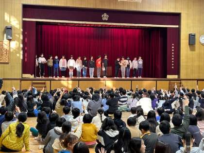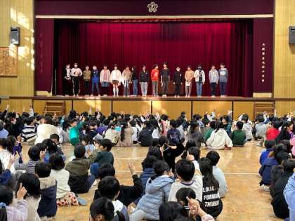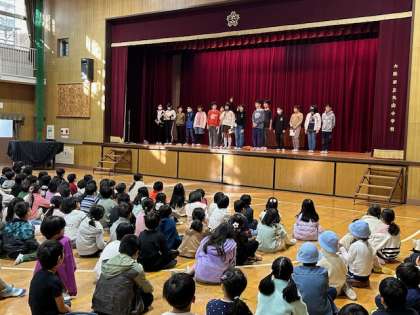 体育館で児童集会をしました。広報委員会による広報活動に関する3択クイズでした。