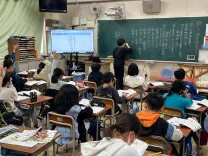 国語は熟語で、上の漢字が下の漢字の意味を打ち消しているものを学習しました。無、不、未が打ち消しの漢字です。思いつく漢字をたくさん発表していました。
