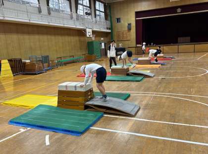 4年生の体育は、跳び箱運動をしました。阿倍野区子ども体力向上支援事業として、運動指導員さんが派遣されました。台上前転のポイントを教えてもらったり、補助をしてもらったりしました。楽しく跳び箱運動ができました。