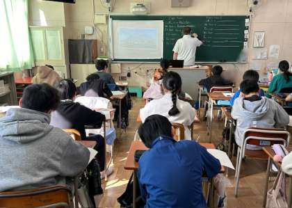 6年生がC-Netの先生と一緒に英語を学習しました。英語の音声を聴き取り、問題に答えました。