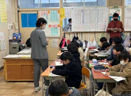 臆病である5歳の豆太が雪の降る暗い夜道を、裸足で医者様を呼びに行った行動の変容から豆太の性格を考えました。この授業は国語科研究授業として教職員が参観しました。