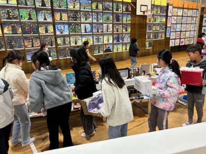 3年生が作品展に展示する工作を体育館に搬入しました。これで準備が終了しました。作品展は17日(火)〜20日(金)は午後1時45分〜午後5時です。また、21日(土)は午前9時〜午前11時30分です。明日からの個人懇談会の際に、子どもたちの作品を鑑賞してください。