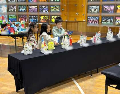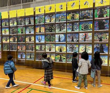 1年生が各学年の作品を鑑賞しました。全学年の絵画と工作をわくわくしながら鑑賞しました。作品鑑賞カードによいところや気に入ったところを書きました。作品に目を奪われて、なかなか書くことができません。1年生は作品のすごさに圧倒されたみたいです。