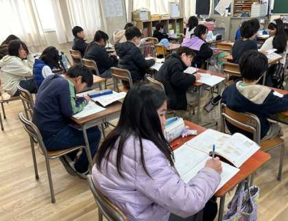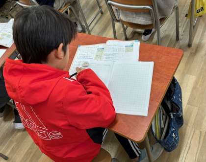 5年生が算数「5年のふくしゅう」をしました。これまでに学習した内容を確実に理解できているかを、問題を解きながら確かめました。