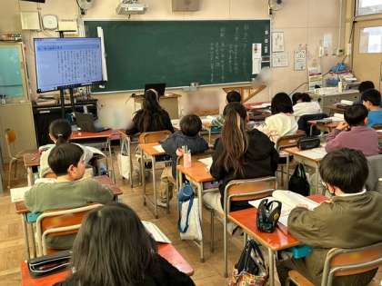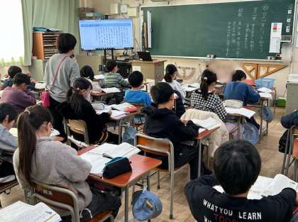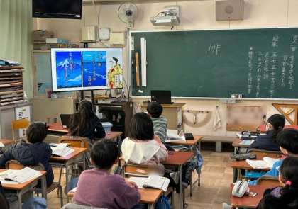 4年生が国語「百人一首に親しもう」を学習しました。五・七・五・七・七のリズムを感じながら、百人一首を読みました。