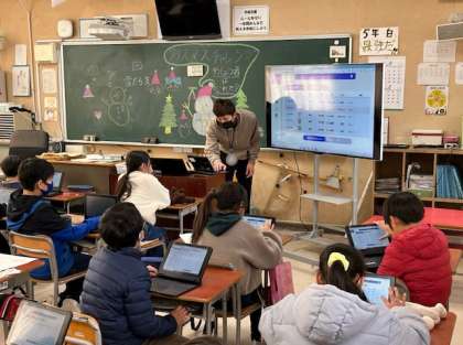 5年生の冬休みの課題として、3学期に行われる漢字検定と英検ジュニアに向け、タブレット端末に入っている漢字検定や英語検定の問題をします。自分の受検級の過去問題にしっかりと取り組んでほしいです。