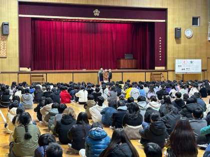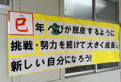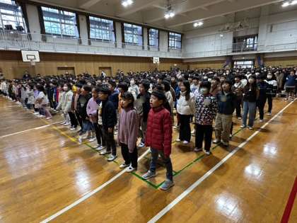 3学期の始業式を体育館で行いました。校長先生からは「今年は巳年、ヘビは脱皮をして大きく成長します。ヘビの脱皮のように、新しいこと、できていないことに挑戦して努力することを続けて、新しい自分になろう」と、お話がありました。2年生代表3名が3学期がんばることを発表しました。最後は校歌を元気に歌って終了しました。