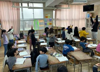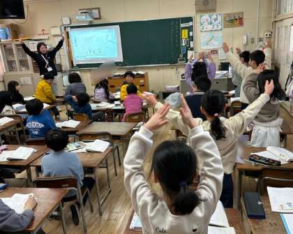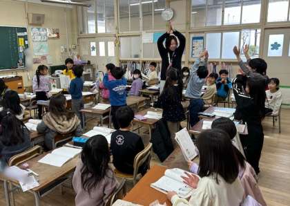 1年生が詩「みみずのたいそう」を学習しました。体を動かしながら声に出して読みました。