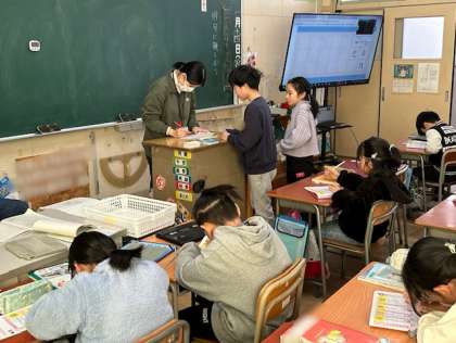 3年生が新出漢字の学習をしました。漢字ドリルに書いた後、担任の先生に点検をしてもらいました。