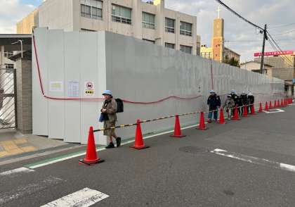 暦では、2月3日節分の前日までは大寒期間ですので、寒さが厳しくなります。しかし、昨日も本日も例年より暖かく感じます。通用門スロープ設置工事のため、安全に気をつけて1列に並んで子どもたちは元気に登校しました。