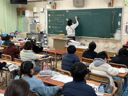 3年生が算数「分母が10の時の分数と小数の大きさをくらべよう」を学習しました。分数と小数の大きさは数直線を使って比べました。