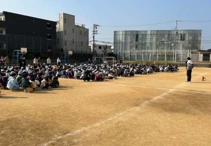 子どもたちには避難訓練をどの時間にするかは知らせずに、休み時間に行いました。子どもたちが自由に過ごしている休み時間に避難訓練をすることで、自分で考えて正しく行動できるかを見守りました。