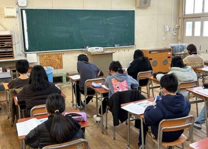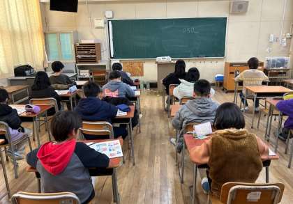 5年生が英検Jr.学校版の検定試験を行いました。ゴールドとシルバーに分かれて、CDから流れる問題を聴き取り解答しました。