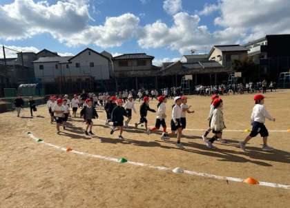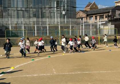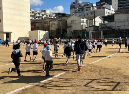15分休み時間に耐寒かけ足をしました。2年生と3年生はトラックを走り、5年生はトラックの外側を走りました。止まらずに自分のペースで5分間走りました。