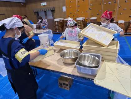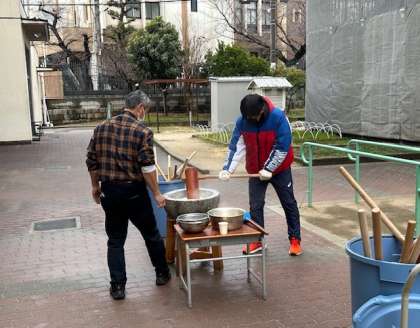 本日、9時より本校にて丸山もちつき大会を行います。マスク着用で、上靴と下靴を入れるビニル袋を持って来てください。保護者の方は入校証を忘れずにお願いします。