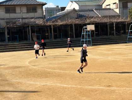6年生が、かけ足記録会をしました。高学年は10分間で運動場を何周走ることができるか記録をしました。耐寒かけ足での練習の成果を発揮して、自分のペースで最後まで走り切りました。かけ足の記録は、記録証に記入して後日持ち帰ります。