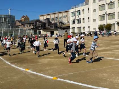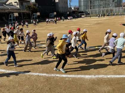 2、3、5年生が耐寒かけ足をしました。今日が最終日です。これまでに5回実施しました。毎回5分間ですが、自分のペースで長い距離を走ることを目標に取り組んできました。かけ足がんばりカードに走った記録を記入します。運動場を50周走ればワールドカップ優勝です。明日は1、4、6年の耐寒かけ足が最終です。