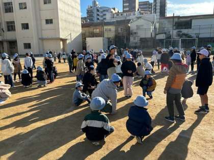 ?スマイル班で楽しくゲームをしました。集会委員会が考えたゲームは、集会委員が言った数と円になって座った人が立った数が同じなら、円から抜けることができるゲームです。楽しく盛り上がりました。
