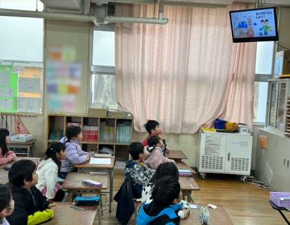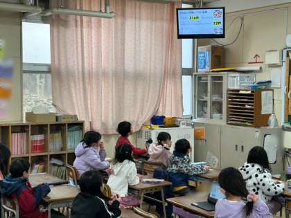 本日の児童集会は、テレビ放送です。保健委員会が、この1年間取り組んできた「けがの予防」に関することを発表しました。
